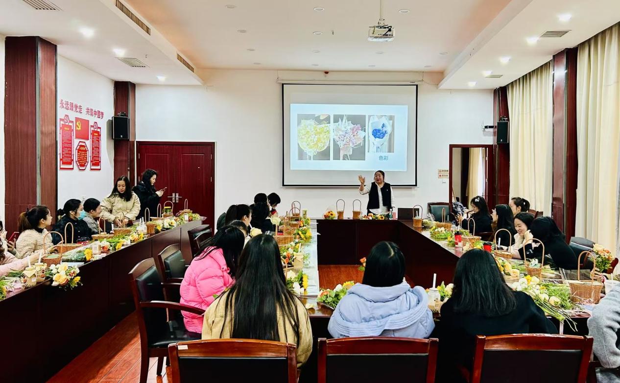 活動(dòng)現(xiàn)場(chǎng)花香四溢,春意盎然。專業(yè)花藝師首先為大家講解了花卉品種、色彩搭配、插花技巧等知識(shí),并進(jìn)行了現(xiàn)場(chǎng)演示。在花藝師的指導(dǎo)下,大家興致勃勃地開始創(chuàng)作自己的插花作品。她們用心構(gòu)思、精心挑選,將一朵朵鮮花錯(cuò)落有致地搭配在一起,創(chuàng)作出一籃籃獨(dú)具匠心、賞心悅目的插花作品。