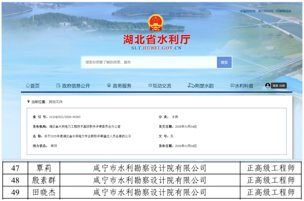 近日,2025年度湖北省工程系列高級(jí)職稱評(píng)審結(jié)果公布。咸寧城發(fā)設(shè)計(jì)集團(tuán)公司人才建設(shè)工作取得重要進(jìn)展,下屬建勘院1名、水利院3名,共計(jì)4名技術(shù)骨干成功獲評(píng)正高級(jí)工程師職稱。